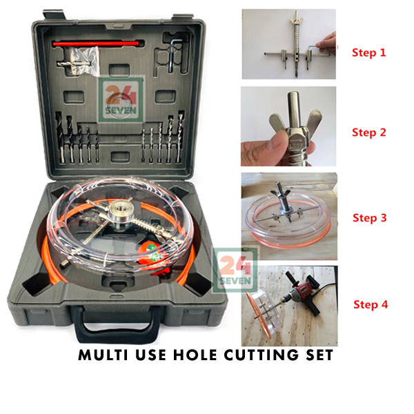 [ READY STOCK ] Multi Use Variable Size Hole Cutting Set Adjustable Large Hole Saw Circle Cutter 40-200MM with Dust Cover for Gypsum Board Y
