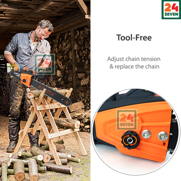 "Tool-less" blade and chain adjustments for convenient operation and easy maintenance