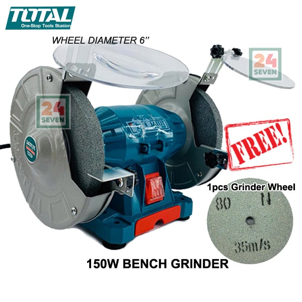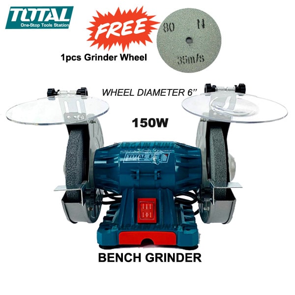 150W TOTAL DOUBLE-WHEELED BENCH GRINDER 150mm (6”) TBG15015 Free Extra 1pcs Grinder Wheel