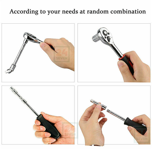 SRUNV Sleeve Bushing Ratchet Wrench Universal Car Repair Auto Repair Car Repair Tool Box Set Combination Multifunction Dr. Socket Wrench Set 46 pcs ¼” Spanar